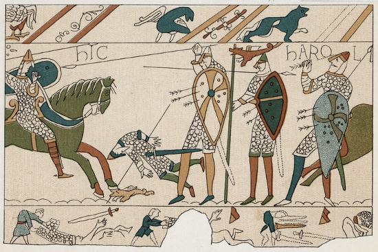 Bayeux Tapestry depicting King Harold II being shot in the eye with an arrow